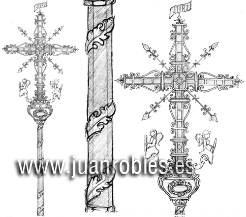 En este caso en la Cruz de los Ángeles de la Ermita de Nuestra Señora de la Cinta Coronada. Está realizada en metal broncineo y madera, en el taller de orfebrería de Joaquin Ossorio.